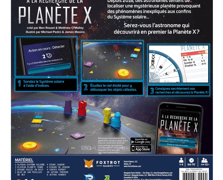 À la Recherche de la Planète X est un jeu de logique et de déduction dans lequel les joueurs interprètent des astronomes observant le ciel étoilé, rivalisant d’ingéniosité pour déterminer l’emplacement de cette mystérieuse planète.