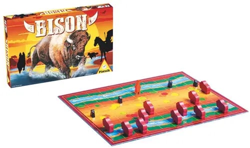 Dans le jeu de tactique Bison, les deux joueurs ont un but différent : le joueur qui contrôle les bisons cherche à amener l’une de ses bêtes de l’autre côté du plateau. Le but de l’autre joueur est de réussir à les empêcher de passer en les attrapant avec son chef indien ou bien en les stoppant grâce à ses chiens.