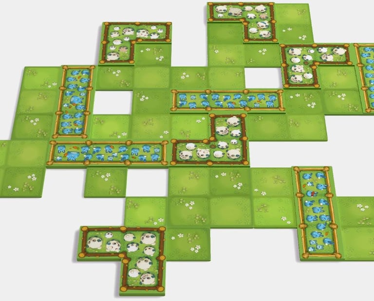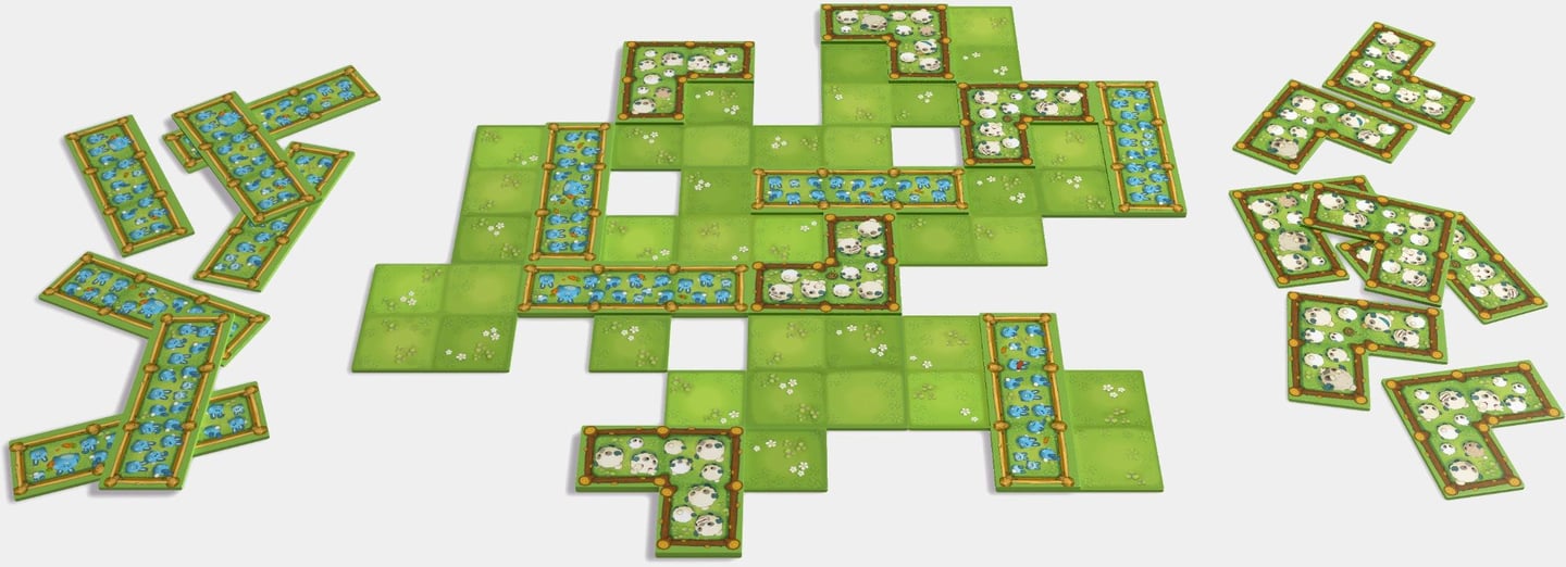 Lors de la première phase de jeu, les joueurs vont agrandir la prairie, en posant une à une et en connectant les tuiles de prairies entre elles.