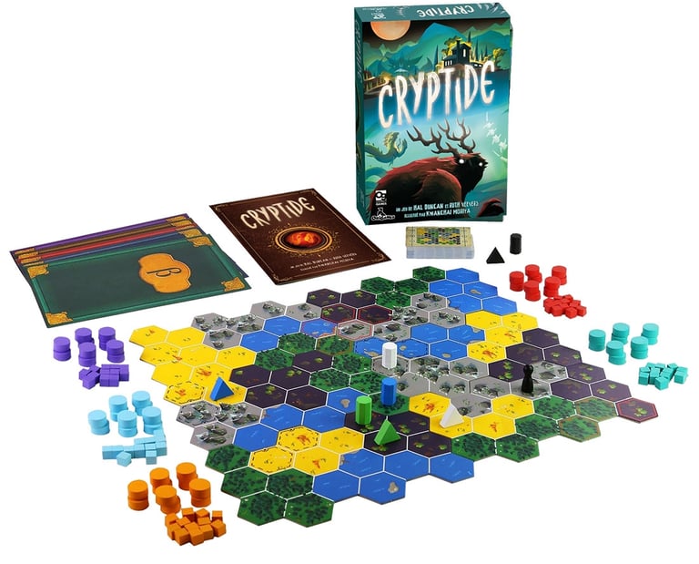 Dans le jeu Cryptide, chaque joueur possède un indice sur le terrain où se trouve la créature. En recoupant vos informations, il ne peut y avoir qu’une case qui y corresponde. Mais le but est d’être le premier à la trouver.
