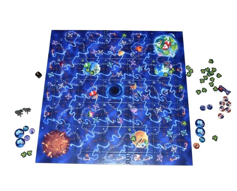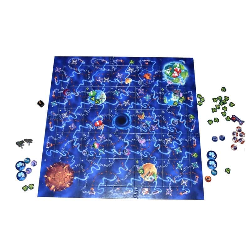 Quand un joueur s'arrête sur une grosse planète, il peut en revendiquer l'autorité en posant un drapeau. Ce drapeau lui rapporte des points de victoire. Mais cette victoire n'est pas définitivement acquise, car un autre joueur peut revendiquer la planète après lui et remplacer le drapeau. A vous de calculer vos mouvements pour être le dernier à revendiquer.