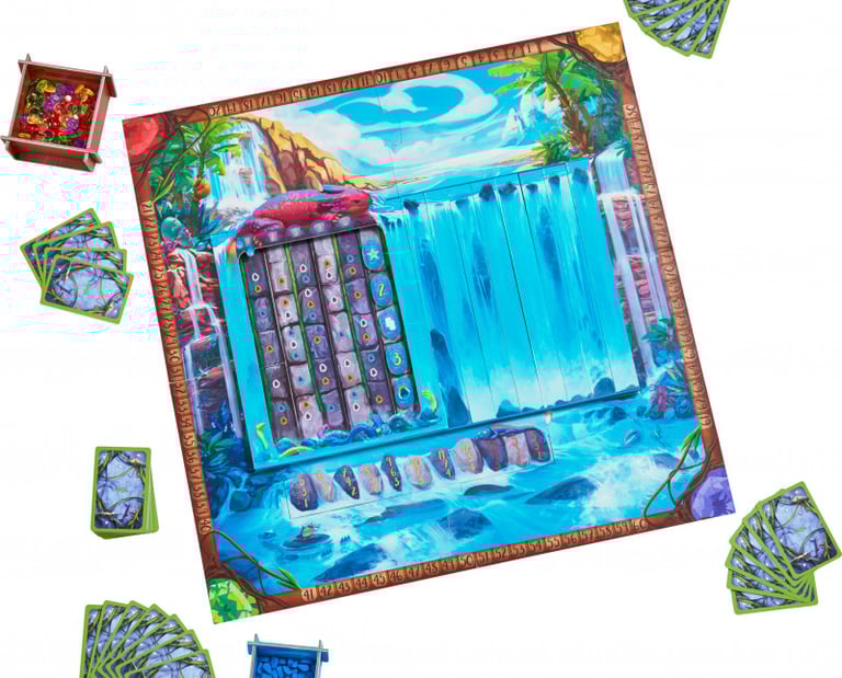Chaque joueur représente un clan qui va abriter ses pierres les plus précieuses derrière le rideau d'une violente cascade d'eau. La cache n'est accessible que lorsque le dragon s'interpose devant le mur d'eau. Au cours de la partie, le dragon avancera progressivement, de gauche à droite, au fur et à mesure que chaque colonne de pierres précieuses sera remplie.