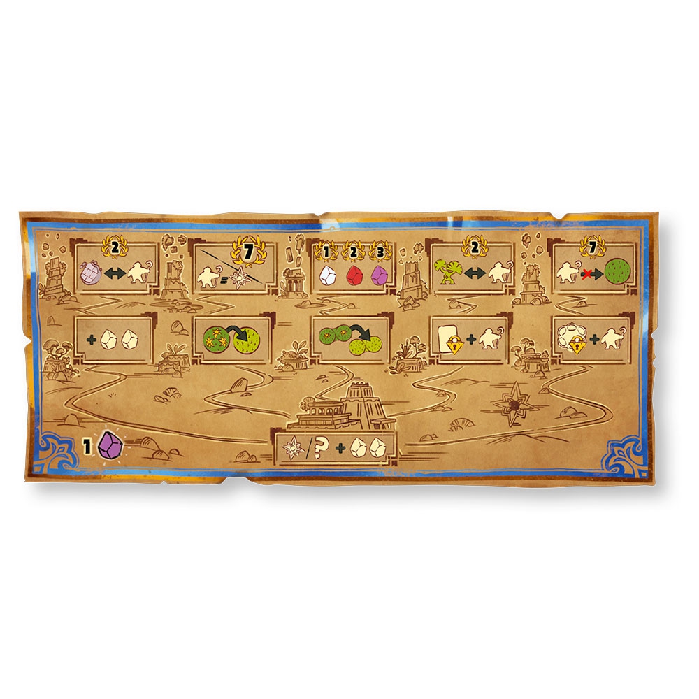 Alors ? Choisirez-vous de privilégier les parterres de fleurs, le contrôle des fontaines, la collecte des gemmes ou la plantation d’arbres ? Chaque méthode peut vous amener à des résultats très différents, et les Maîtrises vous permettront de redéfinir la méthode de calcul de votre score final ! N’oubliez pas que le secret d’Ishtar, c’est de vous adapter aux actions des adversaires !