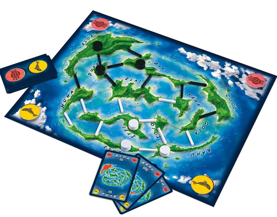 But du jeu : contrôler le plus d'îles possible. Comment ? En s'assurant la possession de la majorité des ponts reliant les îles entre elles. Pour cela, vous pourrez à votre tour jouer un carte "liaison" et installer votre pont entre 2 îles.
