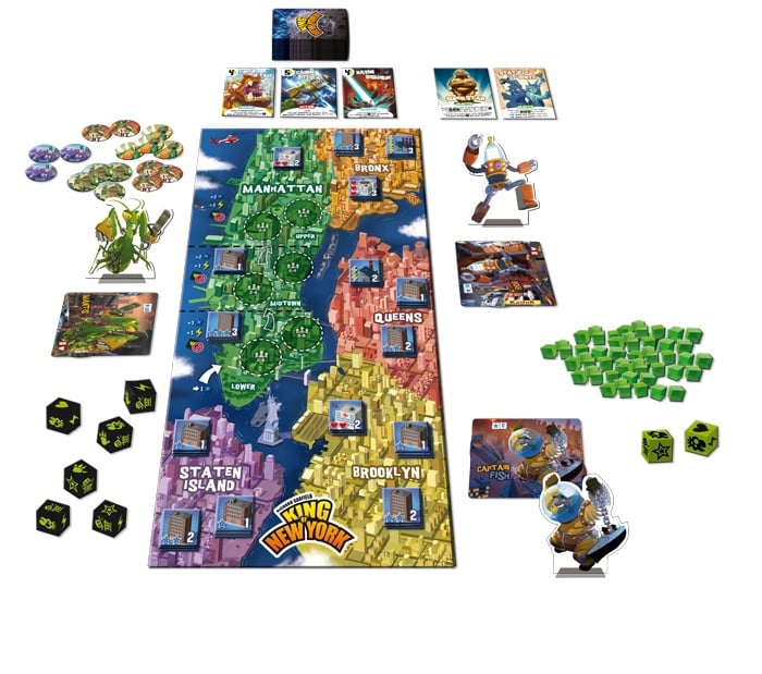 Dans le jeu King of New York, incarnez un monstre gigantesque et régnez sur New York ! Affrontez d’autres immenses créatures et détruisez tout sur votre passage. Pour gagner, attaquez vos ennemis, écrasez des immeubles, développez de nouvelles capacités, devenez une star et faites attention à l’armée : les humains n’ont pas dit leur dernier mot…