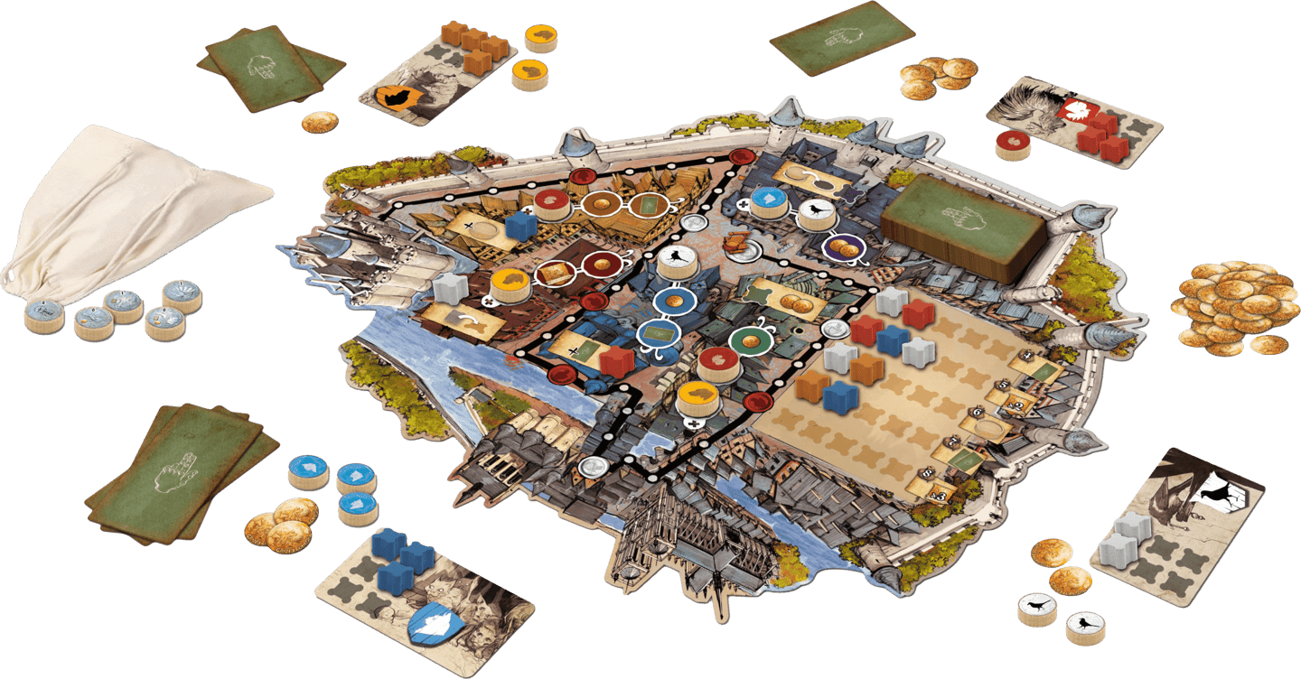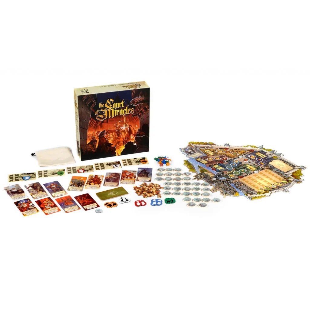 Dans La Cour des Miracles, vous mènerez un clan de mendiants ou encore de voleurs dans les bas-fonds de Paris au XVIe siècle. Votre objectif sera d'asseoir en premier votre renommée sur Paris, ou d'être le plus influent, lorsque le Roi Sans-le-sou aura terminé sa tournée... À votre tour, commencez par choisir un quartier dans lequel vous poserez l'un de vos Pions Ribauds.