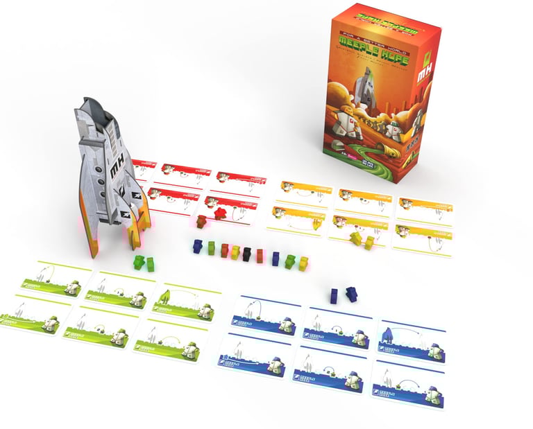 Aujourd'hui la dernière fusée Meeple Hope est prête à décoller, mais malheureusement il n' y aura pas de place pour tout le monde. Tous les coups sont désormais permis dans la file d'embarquement pour tenter de monter dans la fusée et quitter la planète mourante à la recherche d'un nouveau foyer.