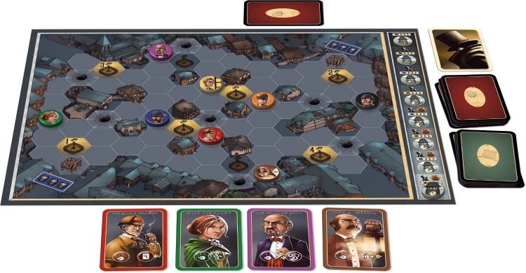 La nuit recouvre les sombres ruelles de son manteau ténébreux et seules certaines zones sont éclairées par la lumière des becs de gaz. Huit enquêteurs se sont réunis pour traquer Mr Jack, toujours introuvable. Mr Jack est très malin, il se dissimule sous l’identité de l’un d’entre eux…