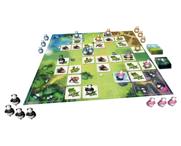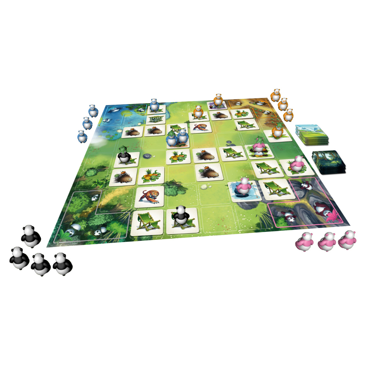 Dans ce jeu de plateau, une famille de pandas explore ses environs. Elle peut y trouver des fruits délicieux, des animaux qui ne manquent pas de piquants, des pièges, des tigres terrifiants, mais aussi d’autres pandas rigolos. À chaque tour, avancez d’une case et choisissez une carte parmi la pioche de la forêt ou de la plaine.