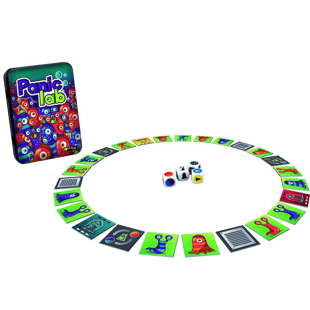 Lancez les 4 dés très spéciaux qui vous indiqueront quel laboratoire a laissé s’échapper l’Amibe et à quoi elle ressemble.