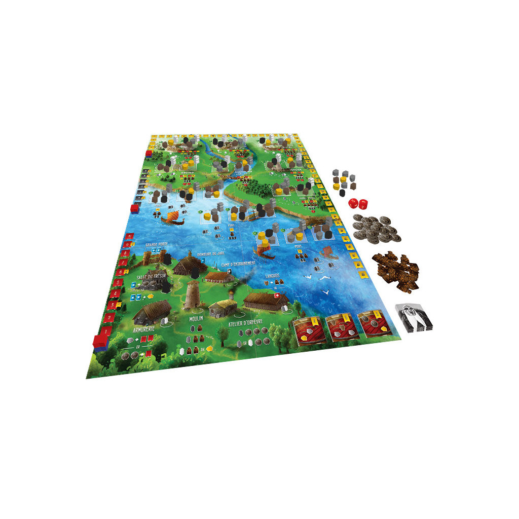 Dans le jeu Les Pillards de la Mer du Nord, votre but du jeu est d’impressionner le Jarl en ayant le plus de Points de Victoire (PV) à la fin de la partie. Ces PV sont obtenus en lançant des Raids sur des Objectifs, en rassemblant des Butins et en faisant des Offrandes au Jarl.