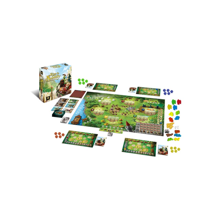 Rise to nobility est un jeu de placement d’ouvriers dans lequel les ouvriers sont des dés. Il faudra tenir compte de la valeur faciale des dés et de votre capacité à utiliser ces valeurs. C’est cela qui déterminera votre nombre d’action par tour.