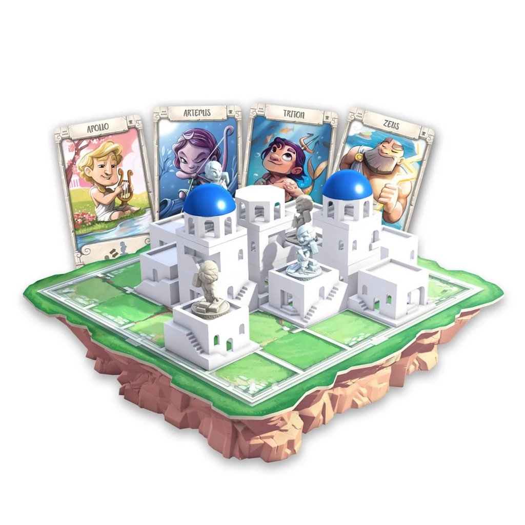 À chaque tour, vous devez en déplacer un et construire sur l’une des cases adjacentes un élément d’immeuble. Regardez une ville s’élever rapidement sur le plateau, à l’image de l’île de Santorin !