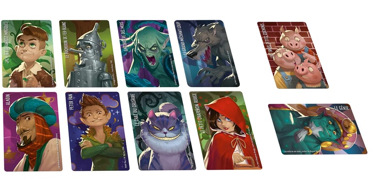 Pour cela d’autres cartes de votre main vous serviront d’indices. L’idée étant de pointer sans un mot des similitudes ou des différences entre le personnage indice et le personnage secret (détails physiques, émotion, métier, idées, caractère...). Par exemple pour faire deviner le petit Chaperon Rouge on pourrait utiliser Alice comme carte indice de similitude (petite fille, yeux bleus etc.).