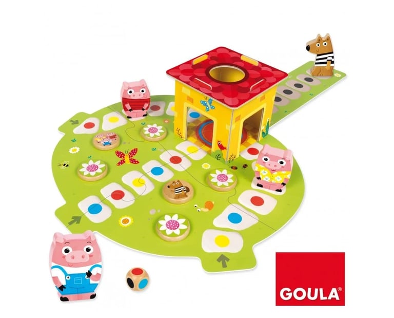 Le premier jeu coopératif pour les tout-petits. Les 3 petits cochons doivent rentrer à la maison avant le loup. Des règles du jeu simples. A partir de 2 ans, 10 minutes.