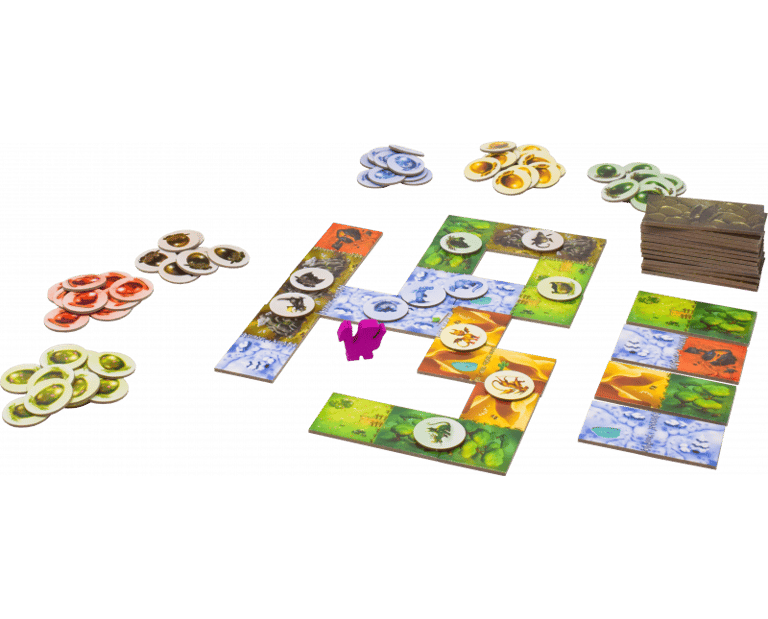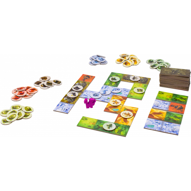 Dans le jeu Dragomino, vous visitez des lieux en choisissant un domino, vous ajoutez ce domino à votre zone d'exploration, puis vous découvrez des bébés dragon ou de simples coquilles d'oeuf en connectant des paysages identiques.