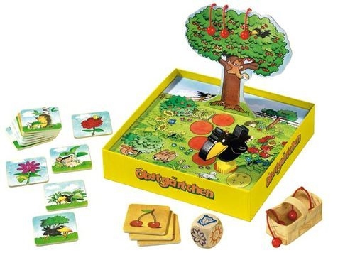 Dans le jeu Le Petit Verger, les enfants jouent ensemble pour cueillir toutes les cerises avant que le corbeau atteigne l'arbre.