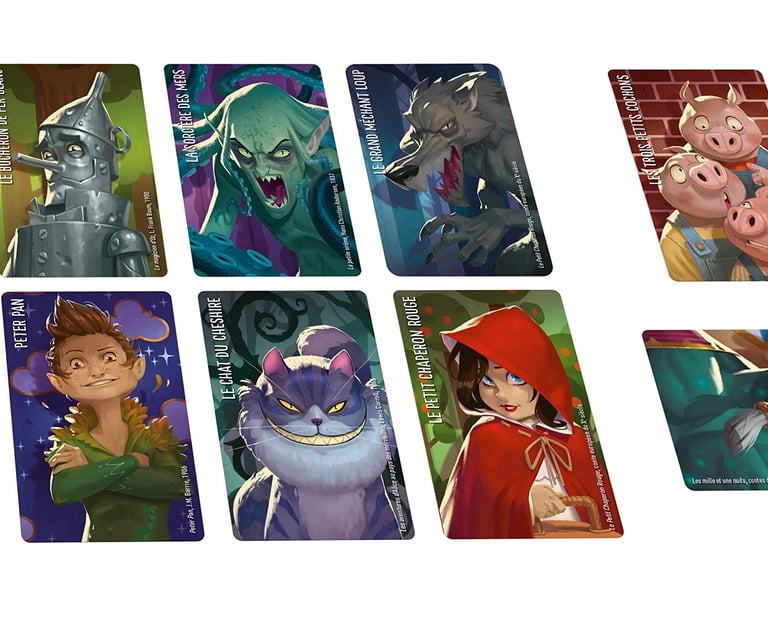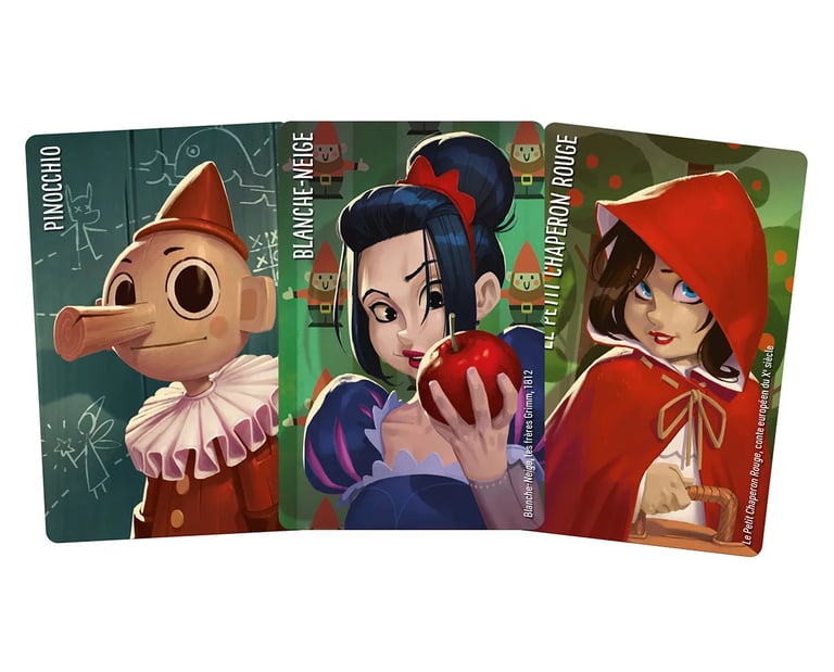 Pour cela d’autres cartes de votre main vous serviront d’indices. L’idée étant de pointer sans un mot des similitudes ou des différences entre le personnage indice et le personnage secret (détails physiques, émotion, métier, idées, caractère...). Par exemple pour faire deviner le petit Chaperon Rouge on pourrait utiliser Alice comme carte indice de similitude (petite fille, yeux bleus etc.).