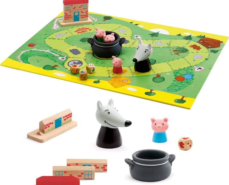 Pendant que le loup compte jusqu'à 10 les yeux fermés, les petits chevraux se cachent dans la maison pour ne pas se faire attraper.